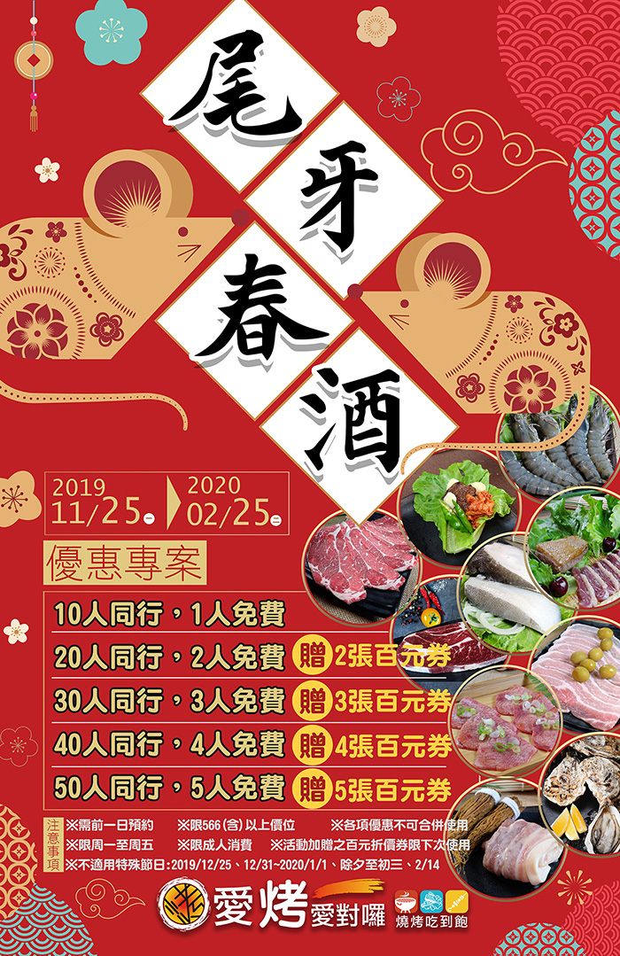 ※不適用特殊節日:2019/12/25、12/31~2020/1/1、除夕至初三、2/14