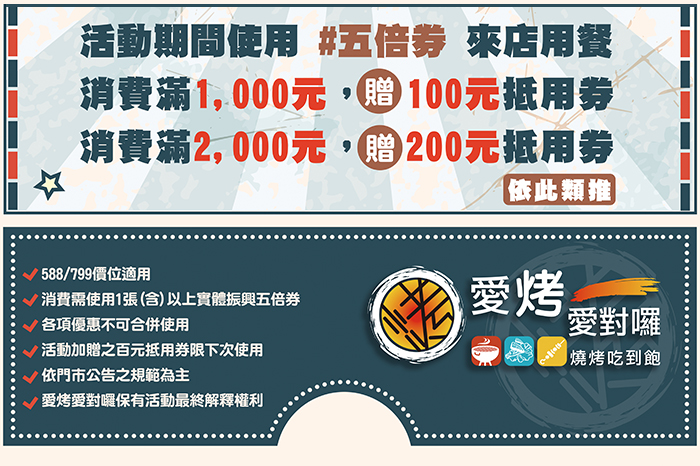 消費滿2000元,贈200元抵用券 (依此類推)【全台門市皆可使用】