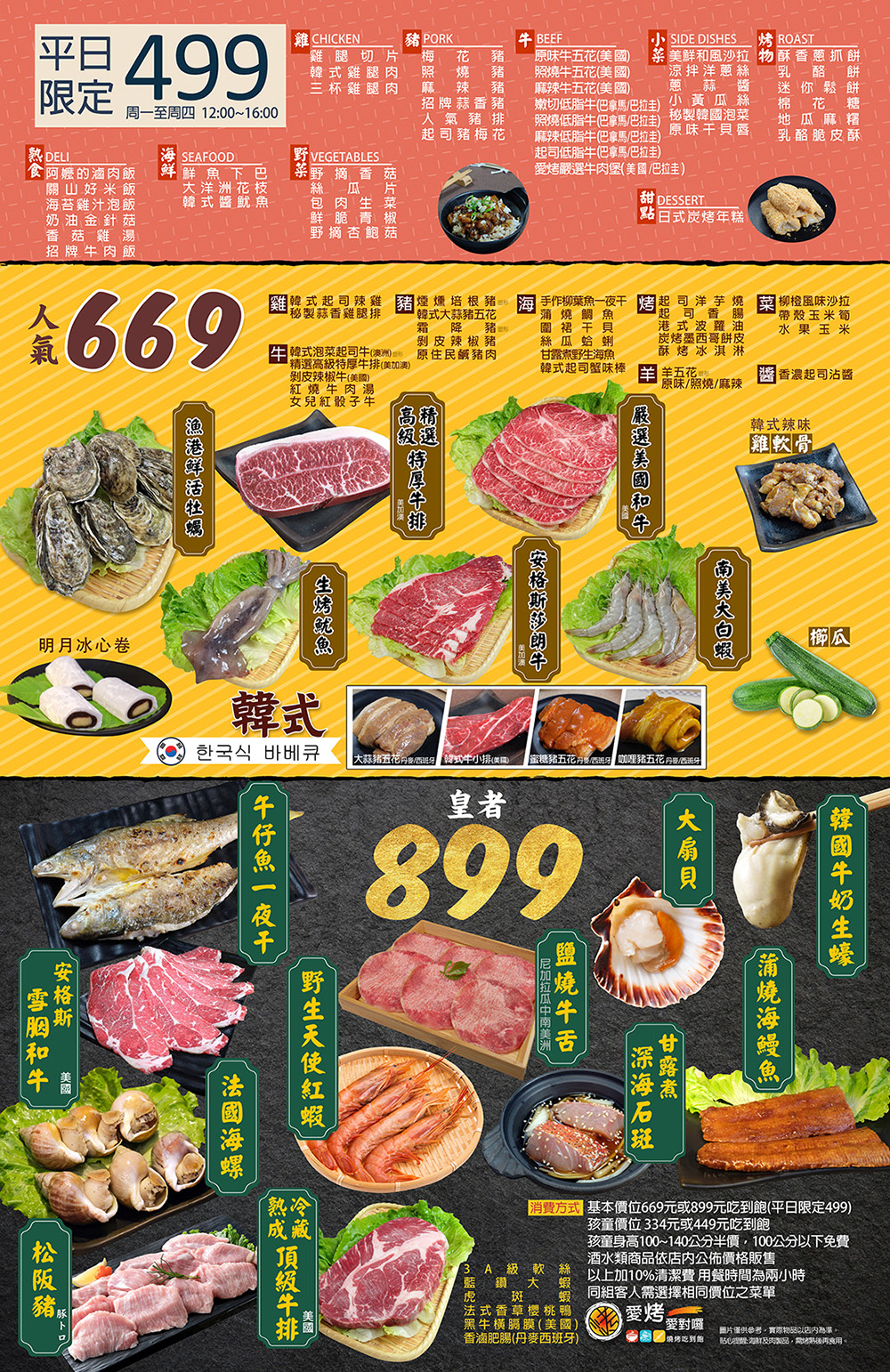 基本價位 669元或899元吃到飽
