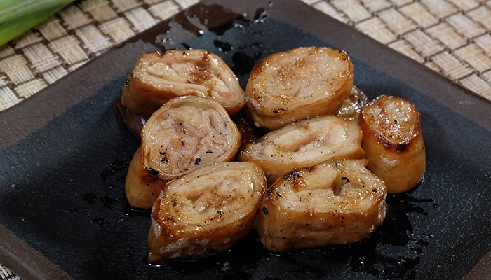 經過炭火炙燒,香味撲鼻而來只需灑少許鹽調味就可品嚐,口感軟脆又帶彈性, 咀嚼起來實在教人回味呀!