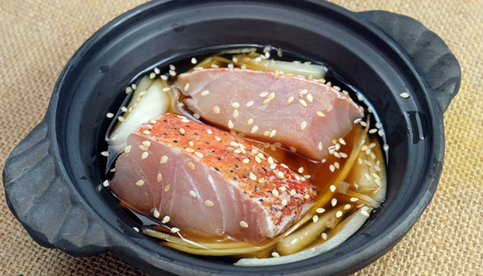 野生紅條又叫東星斑,屬於深海高級魚類。採用日式甘露煮的做法突顯石斑魚獨特紮實口感。
